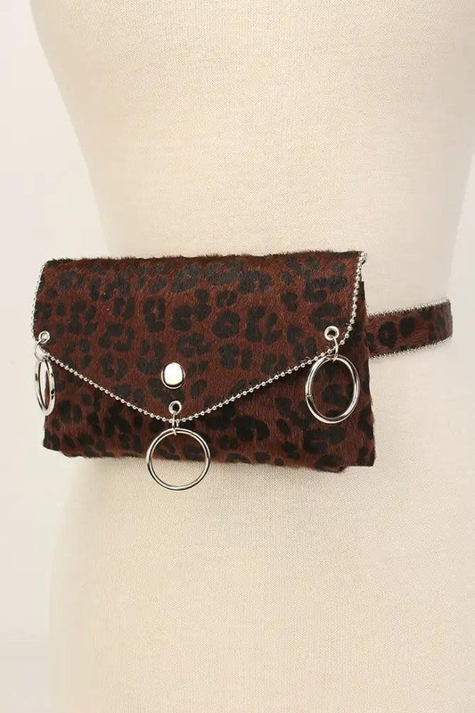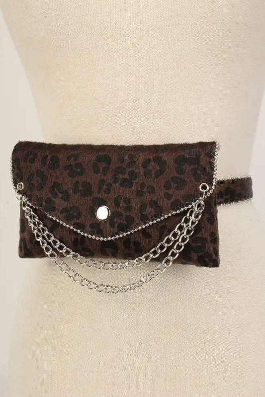 Brown Leopard Chained Short Hair Faux Fur Fanny Pack