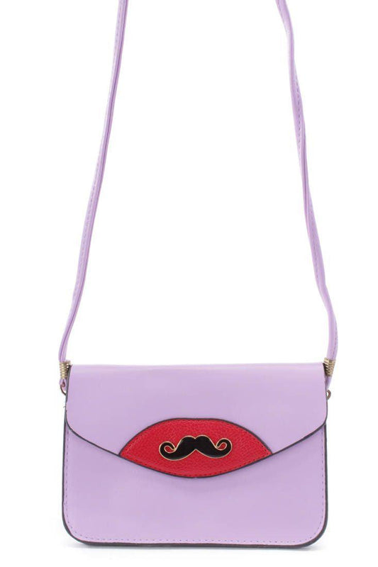 Lavender Mustache Pendant Faux Leather Clutch