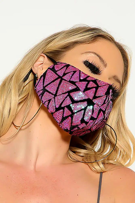 Pink Purple Sequin Geometric Print Fashion Mask