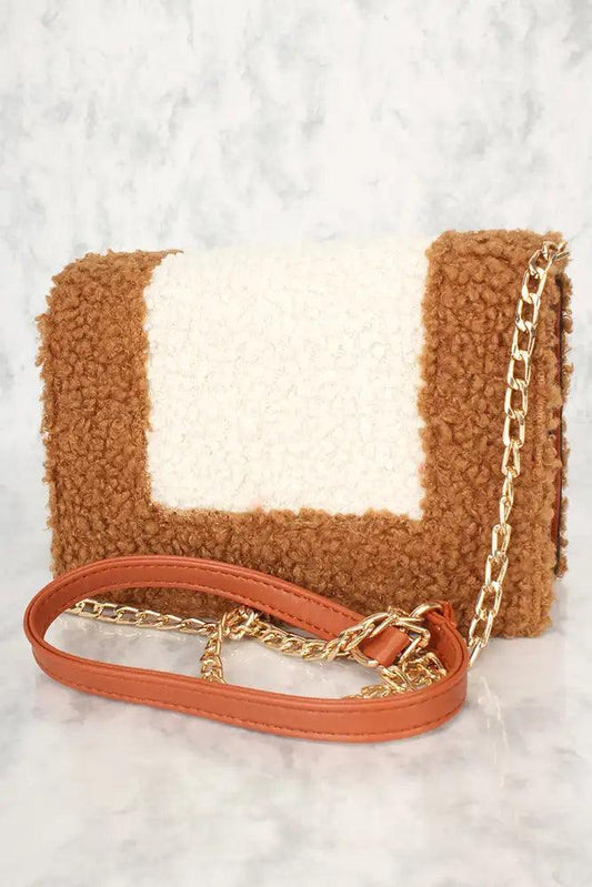 Sexy Camel Faux Leather Curly Wool Crossbody Handbag
