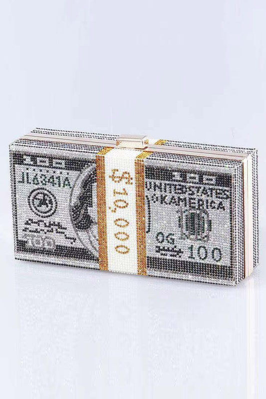 US Dollar Print Rhinestone High Polish Chain Shoulder Bag