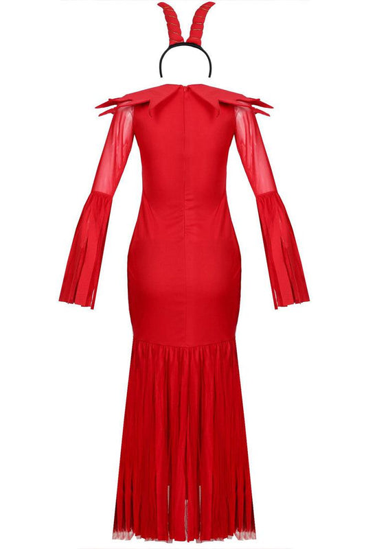 Red Mesh Ruched Zipper Full Length 2 Pc Sexy Devil Costume