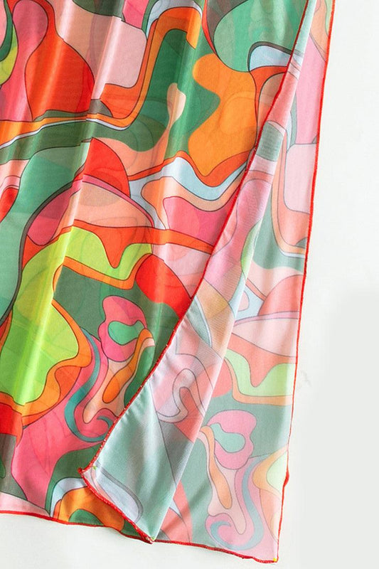 Red Multi Triangle Top Cover Up Three Piece Swimsuit