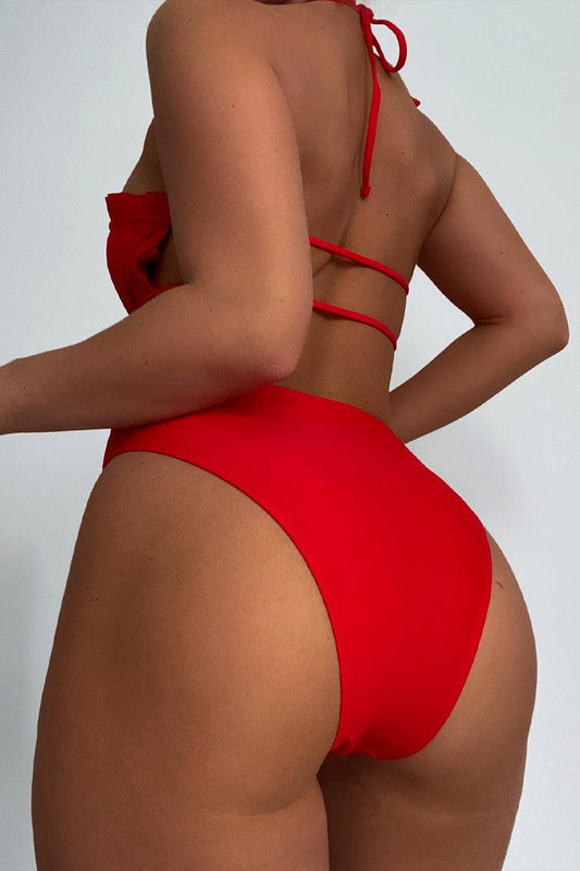 Red Rose Narrow Cut Top Cheeky Sexy 2Pc Bikini Swimsuit