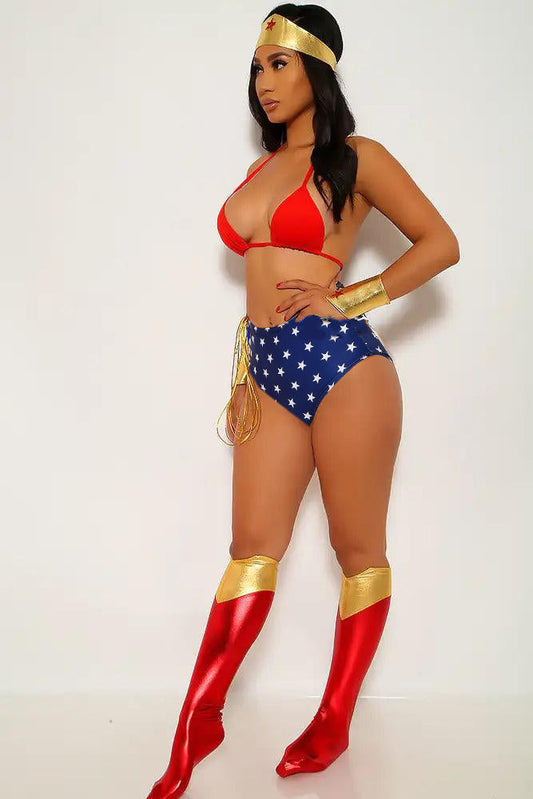 Red Sleeveless Metallic Versatile Two Piece Costume