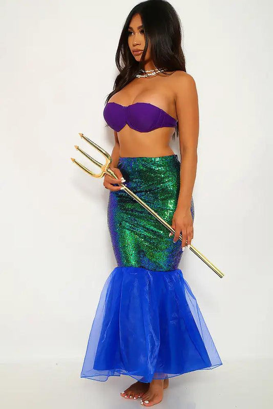 Royal Blue Green Mermaid Skirt One Piece Costume