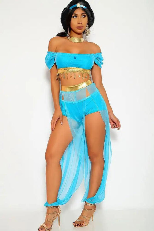 Sexy Blue Gold Coins Exotic Storybook Princess J 3 Pc. Costume Set