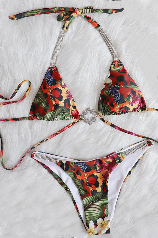 Tropical Rainbow Leopard Print Rhinestone Sexy Bikini