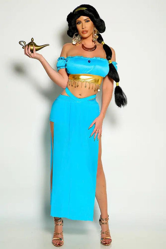 Turquoise Blue Mesh Satin Princess Jasmine 3 Pc Costume