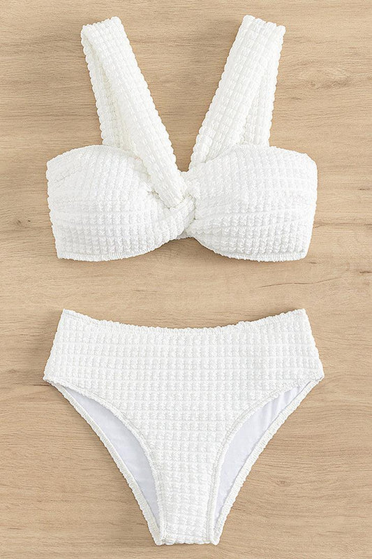 White Texured Puff Halter High Wait Cheeky 2Pc Swimsuit Set