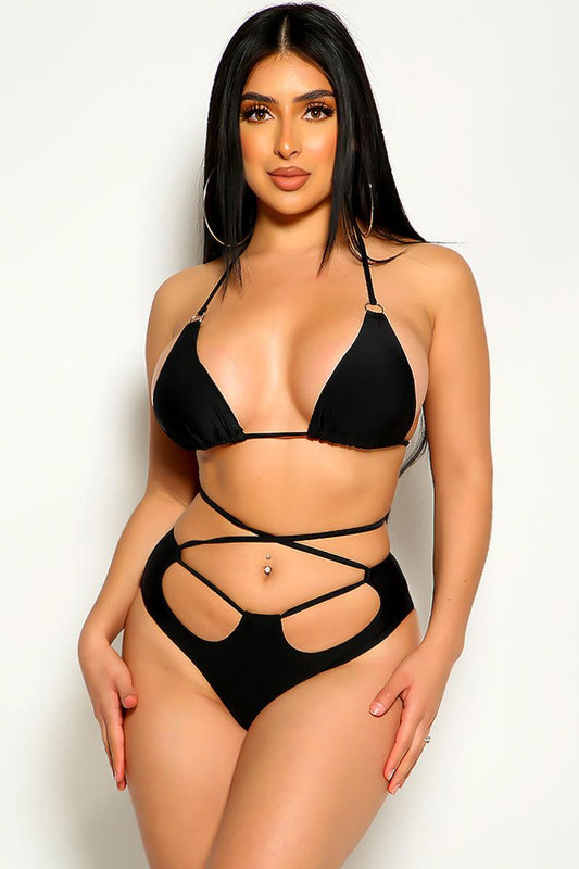 Black Strappy O-Ring Accent Two Piece Swimsuit