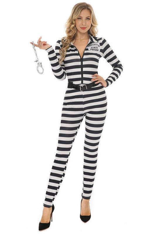 Black White Stripe Sexy Prisoner Long Sleeve 2 Pc Costume