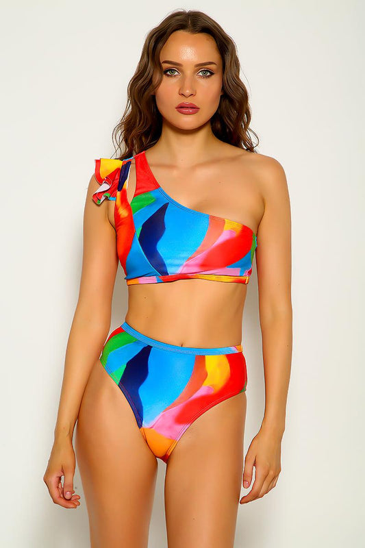 Multi Printed Ruffled Sexy Two Piece Swimsuit