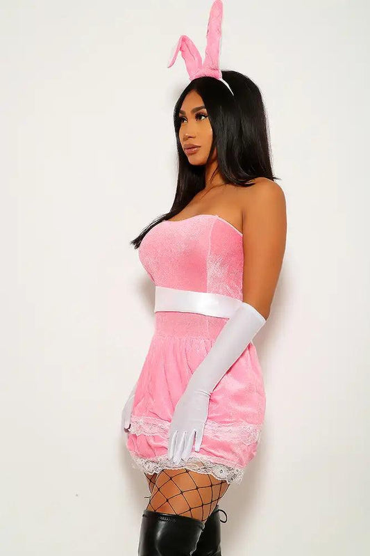 Pink Strapless Dress Glam Bunny 6pc Sexy Costume