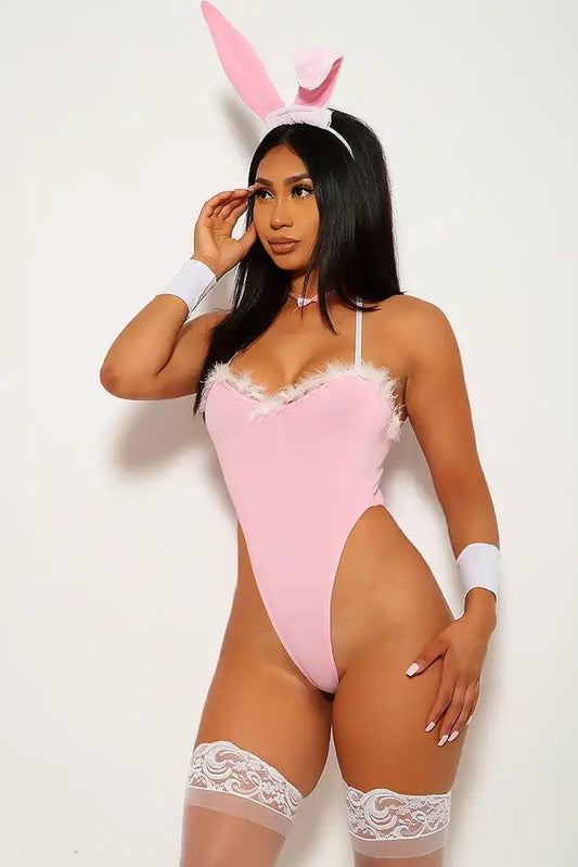 Pink Velvet Sexy Bunny 5 Piece Costume