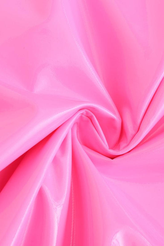 Pink Faux Patent Leather Halter Low Back Sexy Latex Mini Dress