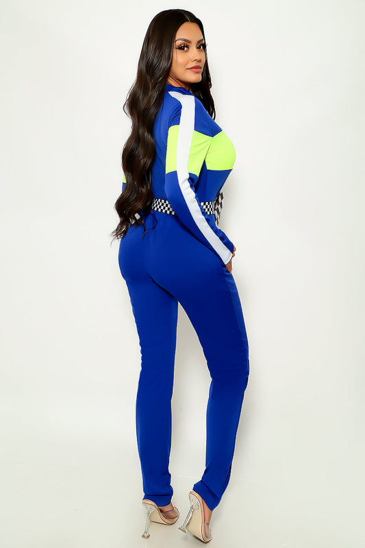 Blue Zipper Fitted Biker Length Race Car Race Sexy Costume