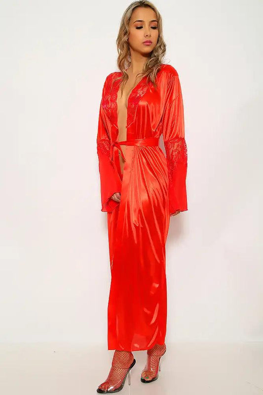 Red Satin Lace Embroidered Two Piece Lingerie Set
