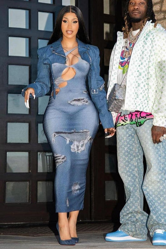 Sexy Blue Ripped Cut Out Detail Sexy Party Dress