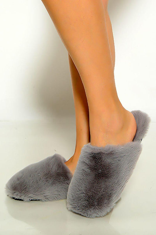 Grey Furry Closed Toe Comfy Slippers