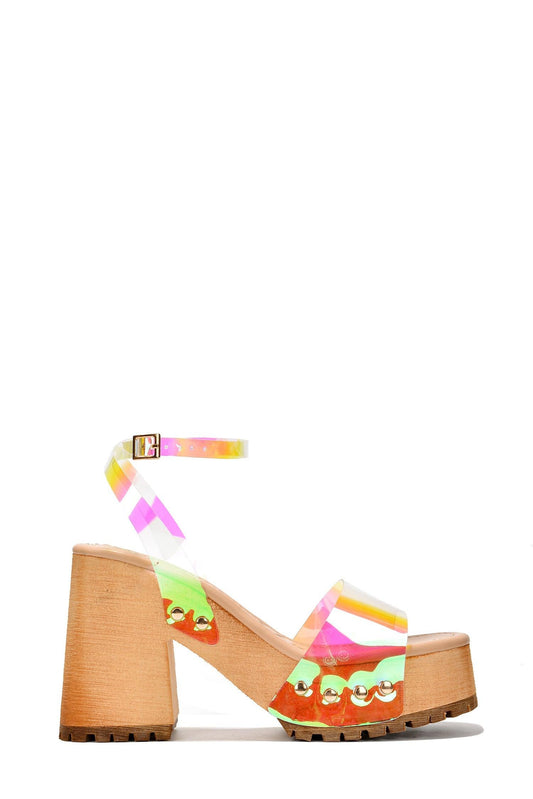 Blush Rhinestone Open Toe Ankle Strap Wedges