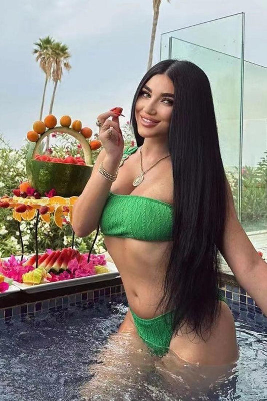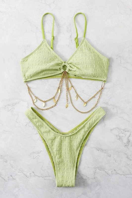 Green Gold Leaf Chain Ultra Cheeky 2Pc Bikini Swimsuit Set