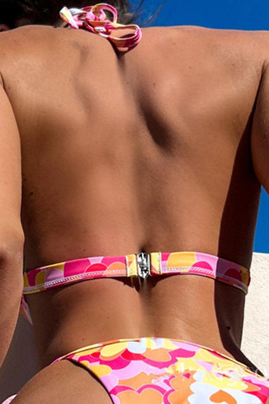 Red Floral Twist Knot Cut-Out Cheeky 2Pc Sexy Swimsuit Set Bikini