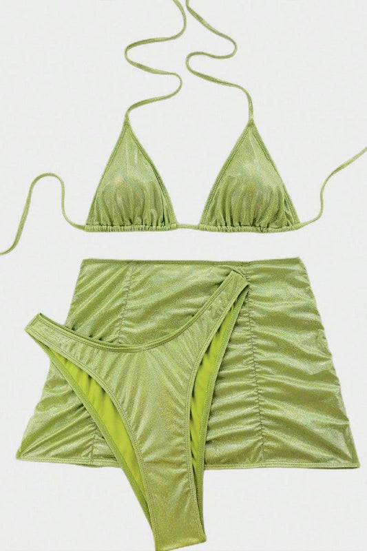 Green Tinker Holographic Triangle Cheeky Cover-Up 3Pc Swimsuit Set