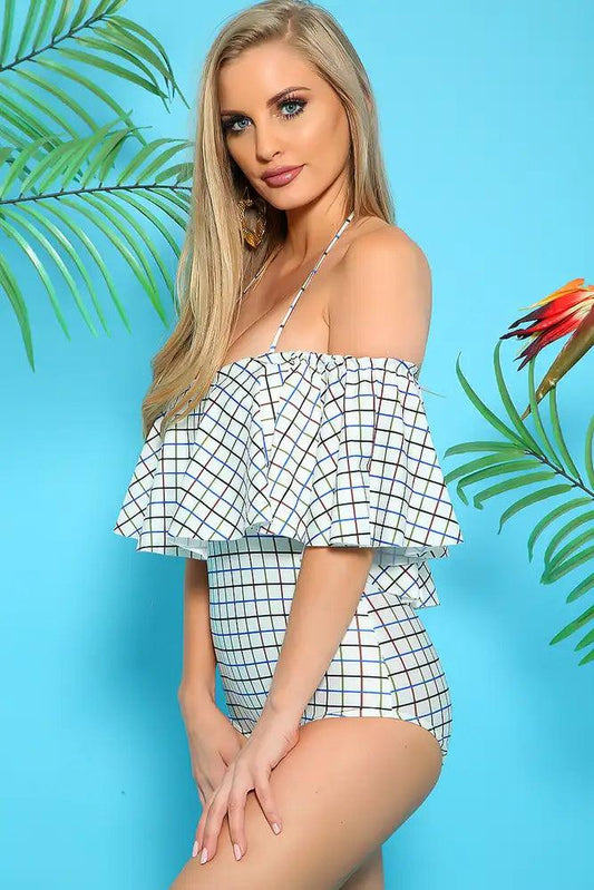 Sexy White Blue Over Layer Padded One Piece Swimsuit