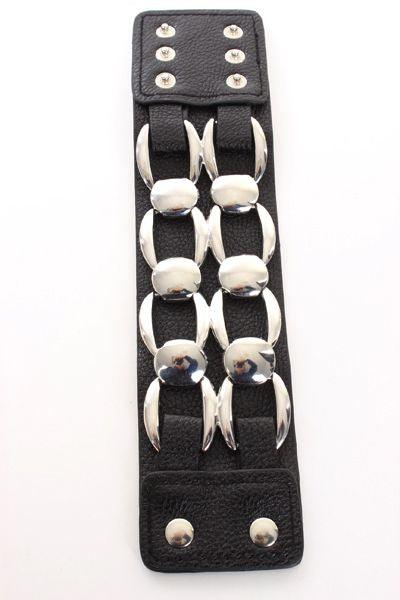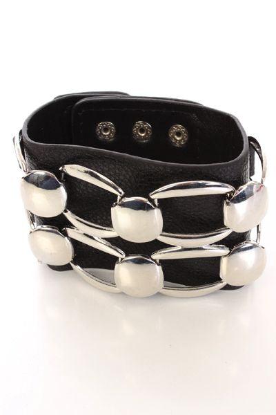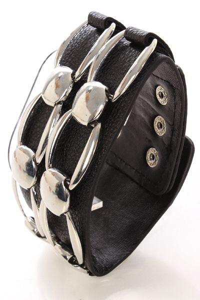 Reward your wrist! Get all wrapped up in this sleek bracelet and its vegan faux leather band! Just loop the smooth band, adorned by linked high polished metal decor, around your wrist, then use the dainty, double button snap lock closure to secure it in place. Glistening with high polished hardware make this accesssory perfect for boho and classic closets alike. Pair this piece with your fave skinnys, and high low hem top for a totally timeless look!