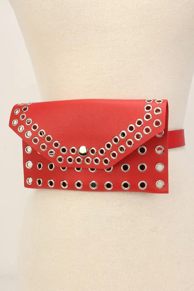 Red Cut Out Faux Leather Mini Fanny Pack