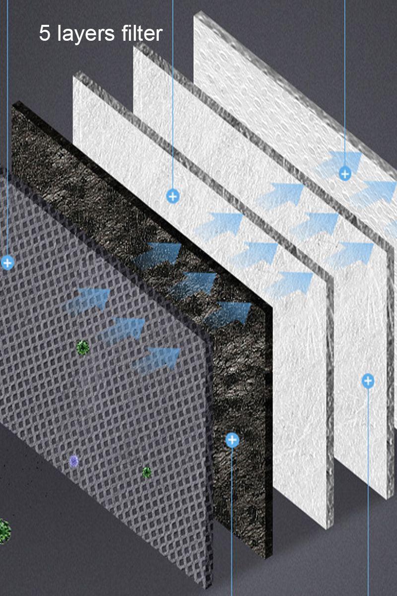 Grey 5 Layer Respirator Reusable 1 Piece Face Mask