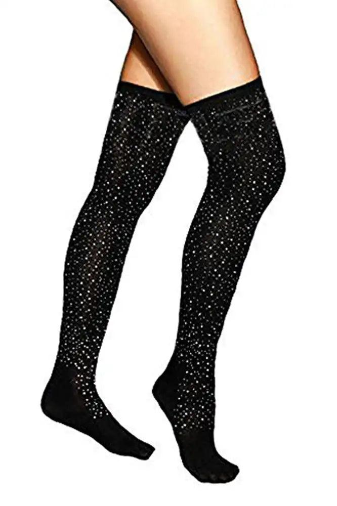 These sey socks can make any outfit looks great! Featuring, pair of thigh high sock with stripes and rhinestone detail