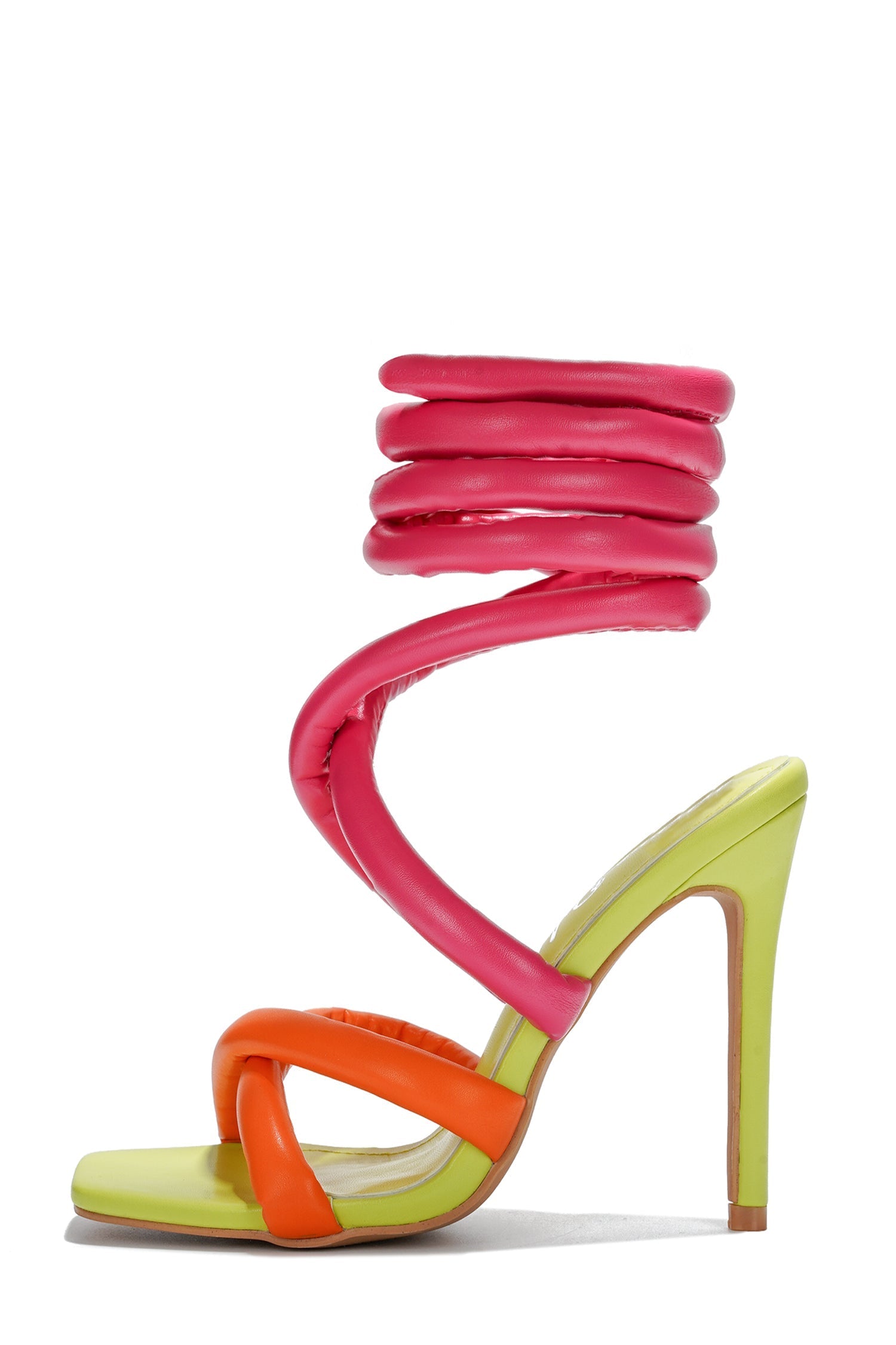 Make a bold statement with Astrid fashion-forward thick lace-up high heels. Featuring a thick lace strappy design that spirals up the leg,these high heels blend colorful and playful elements,making them perfect for both chic daytime outings and glamorous evening events. Pair them with your favorite dresses or skirts.