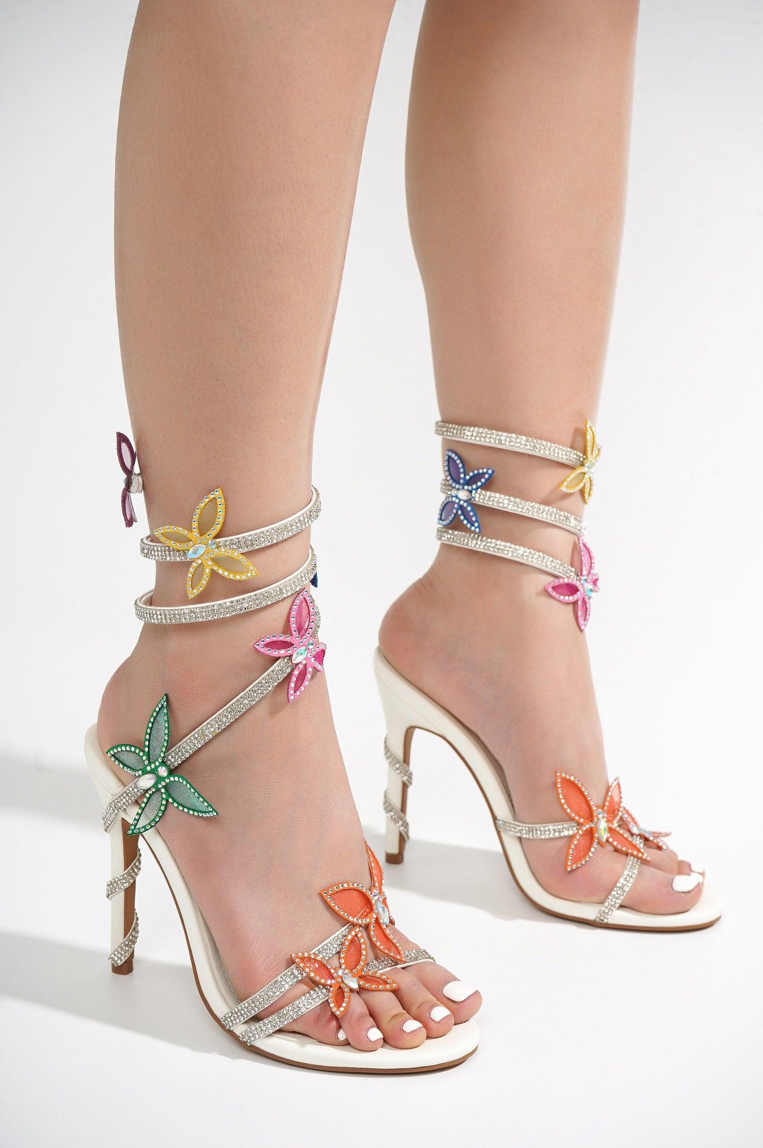 These stunning Bitnari heels are the perfect way to make a bold statement. The butterfly accents and ankle wraps will ensure that you're making a sparkling entrance wherever you go.