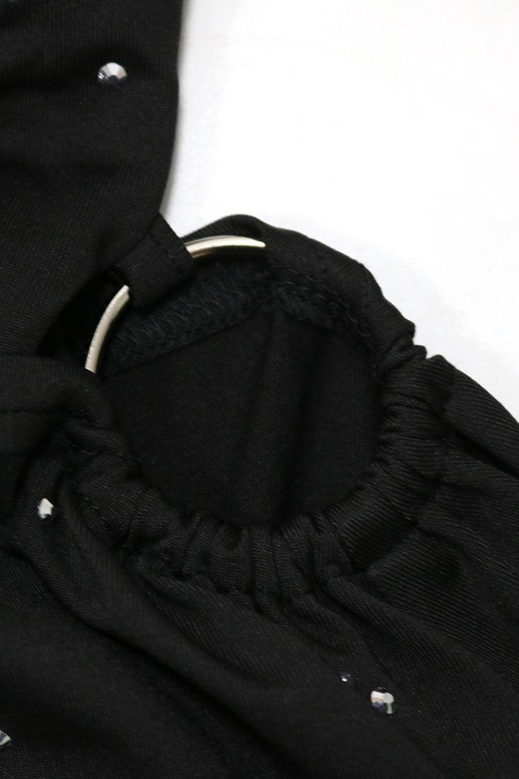 "Turn heads and steal the show in our Black Strapless Silver Rhinestone O-Ring Side Cut-Out Asymmetrical Sexy Party Dress. The sleek black fabric, sparkling silver rhinestones, and unique side cut-outs flatter your figure and add a touch of edge. Perfect for any party, this dress will make you the center of attention!"