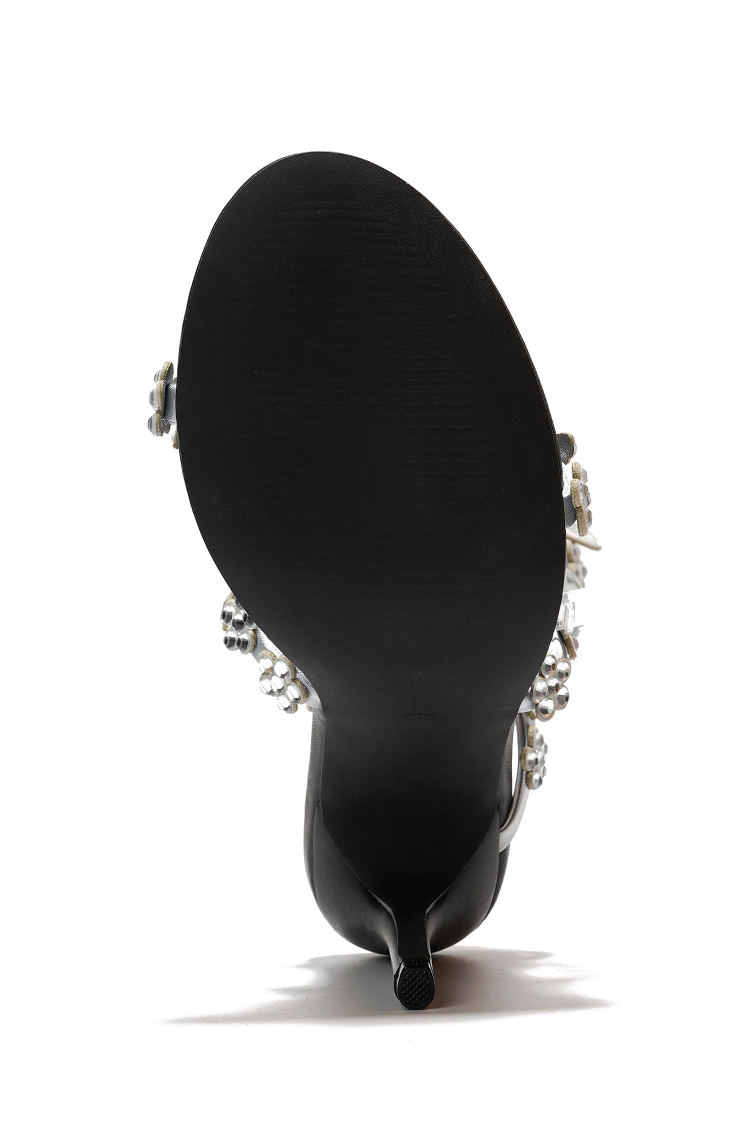 Step out in the Chastity Rhinestone Floral Embellished Stiletto High Heel Sandals and enjoy the perfect blend of beauty and elegance. These sandals will not only complement your most glamorous outfits but also add a touch of magic to your every step. Stunning floral embellishments that capture the light and everyone's attention, perfect for those special evenings or any event where making a memorable entrance is a must.