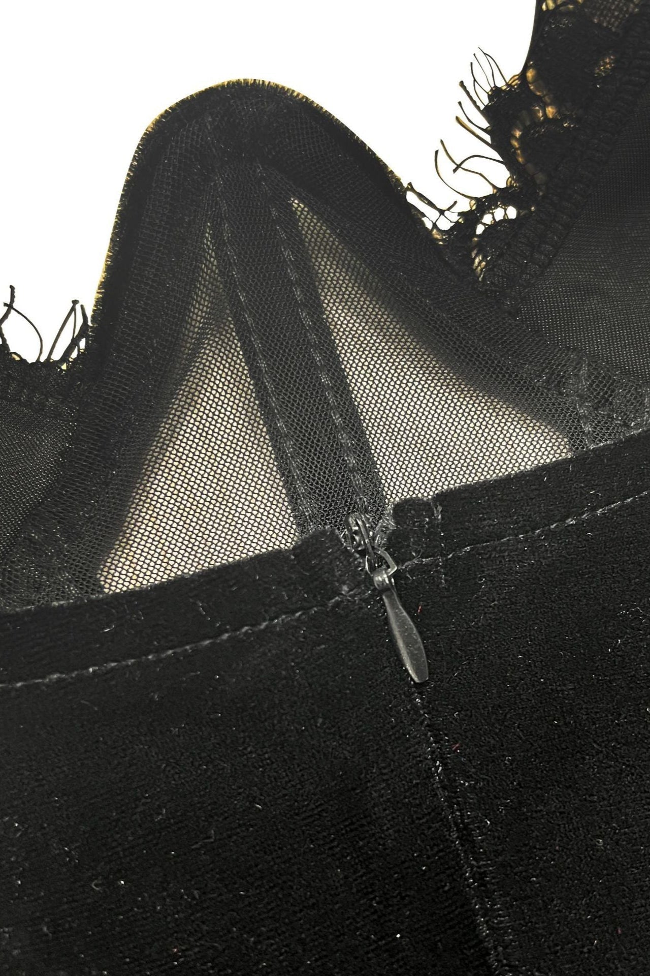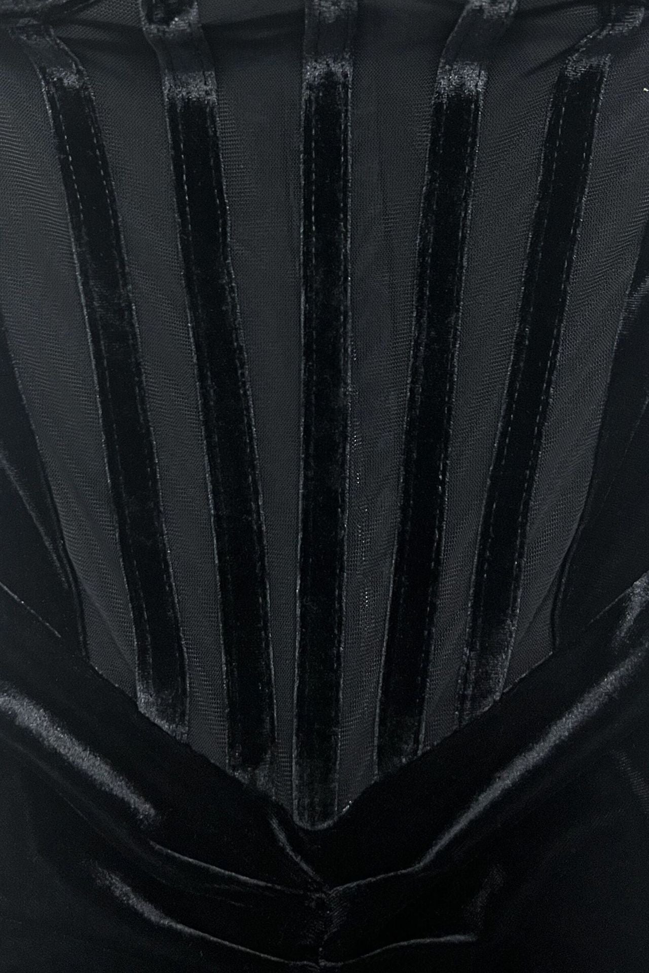 Black Rhinestone Lace Velvet Corset Boned Long Mermaid Dress w/ Gloves