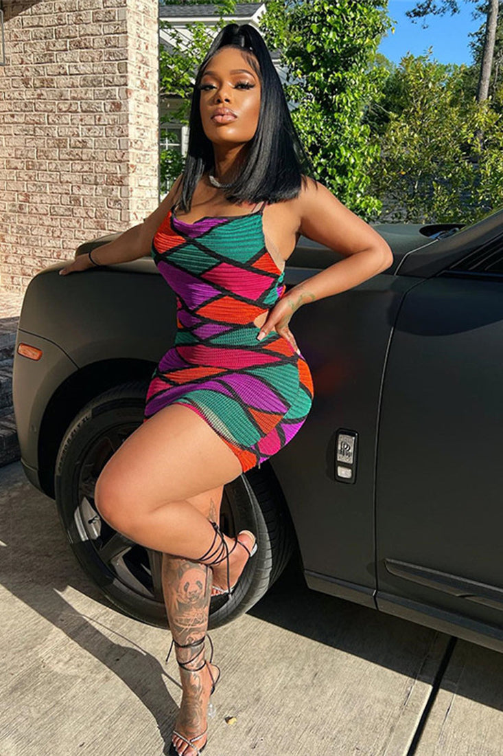 Multi Netted Mesh Cut-Out Sleeveless Sexy Fitted Mini Dress