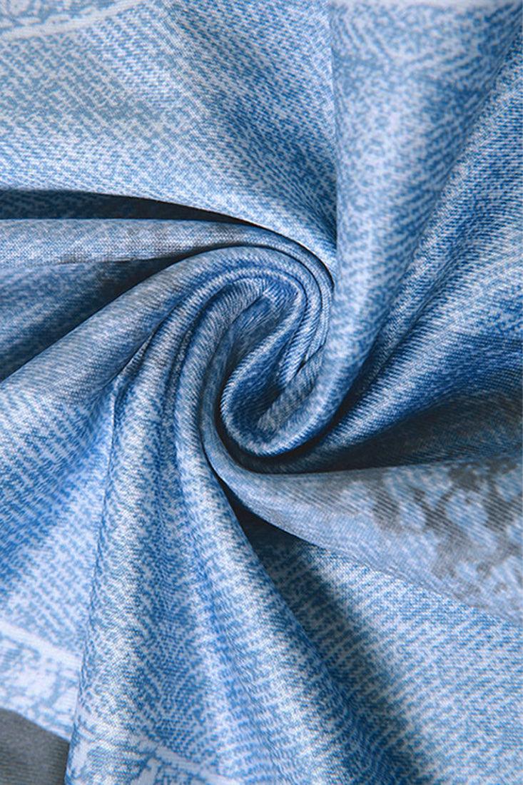 Blue Distressed Denim Printed Black Two Piece Sexy Dress