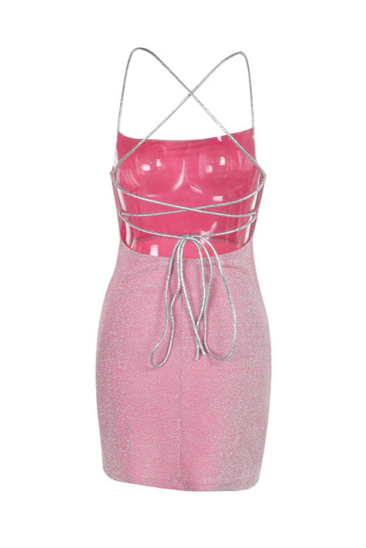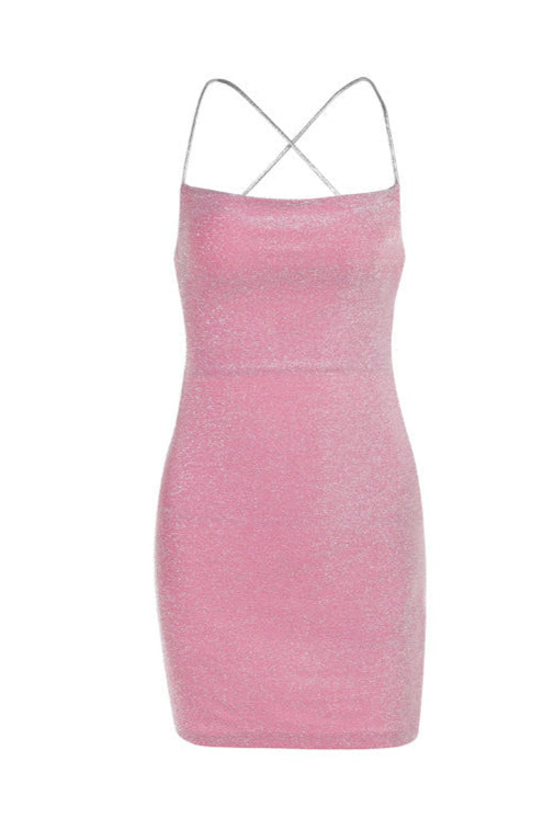 Pink Sparkly Glitter Silver Straps Backless Sexy Party Dress