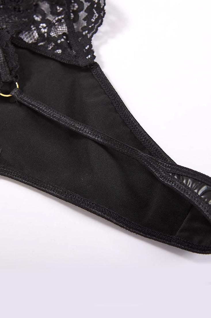 Black Faux Leather Lace Sides Sexy Thong Lingerie Bodysuit