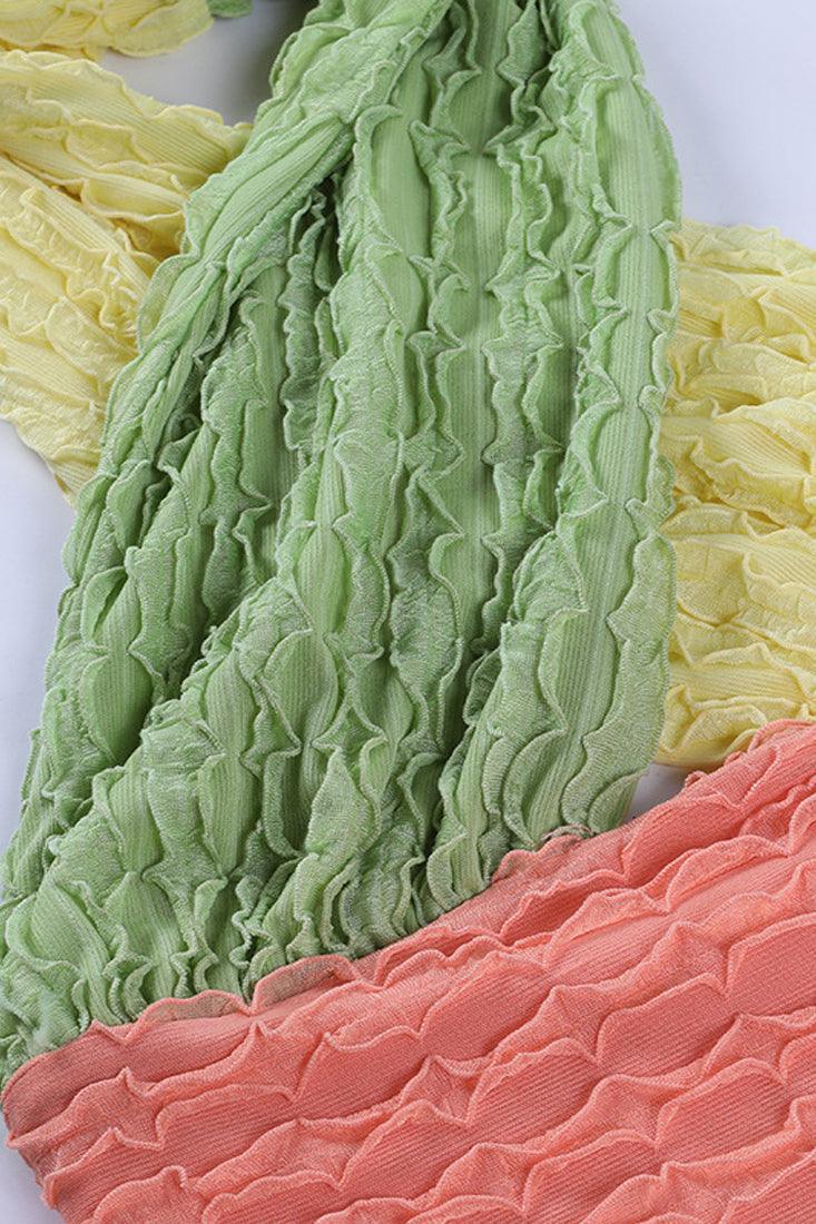 Green Yellow Orange Textured Fabric Halter Sexy Top