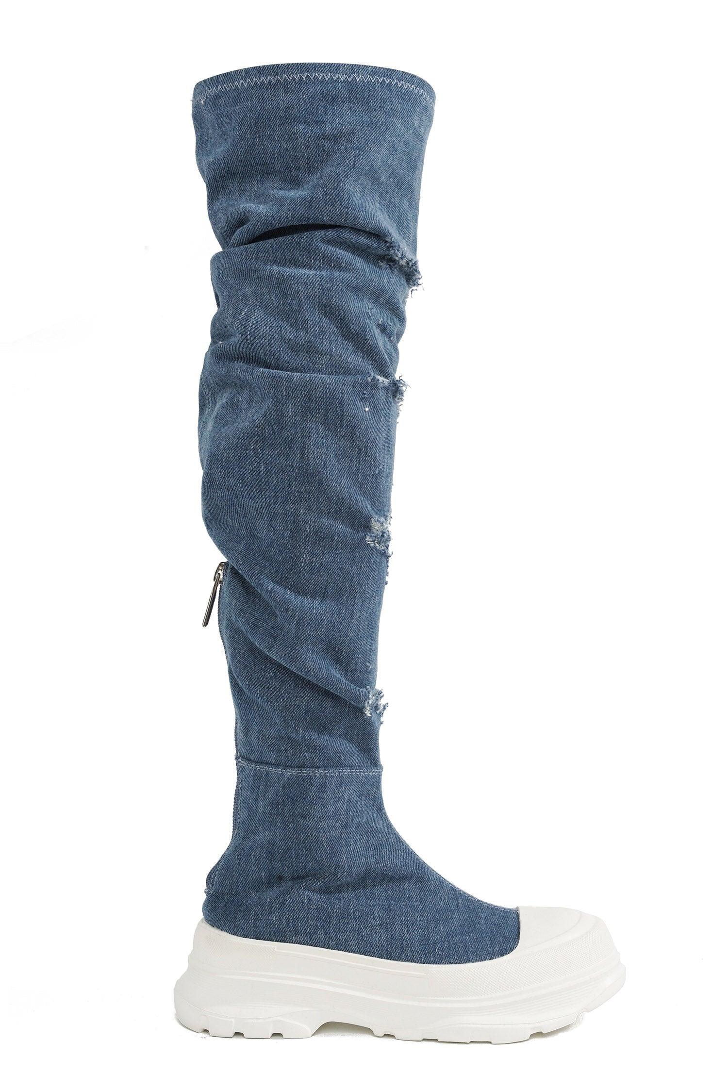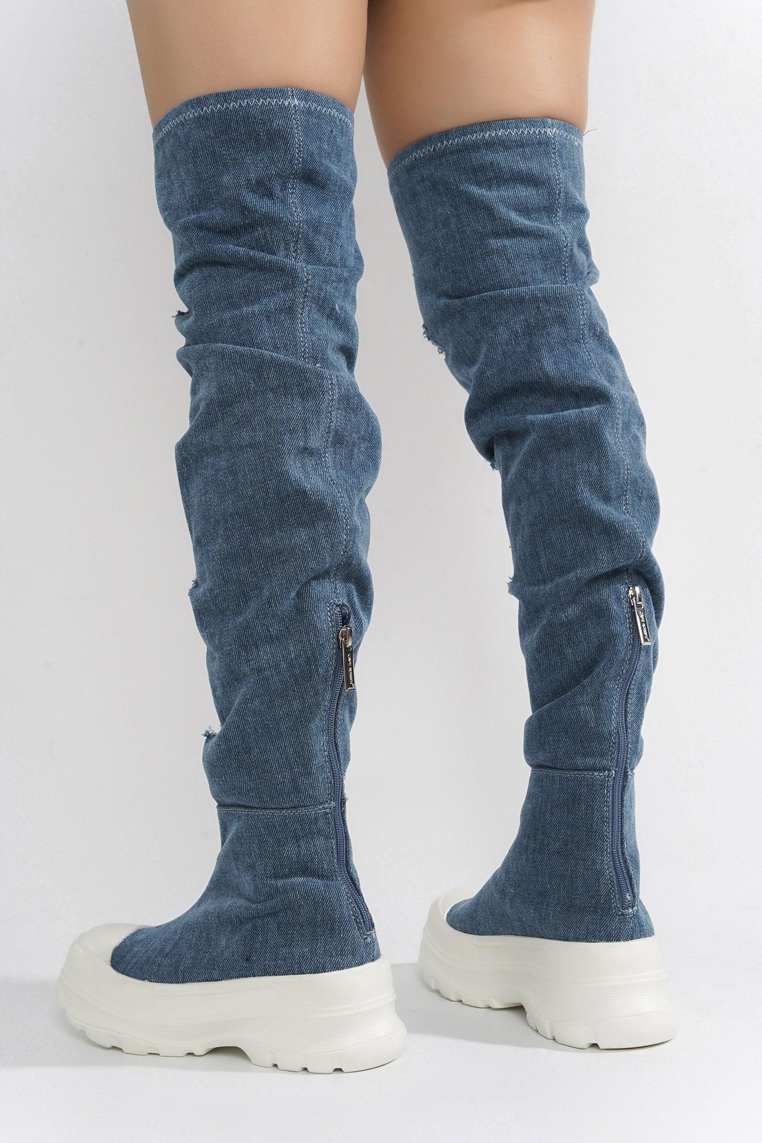 These ruggedly chic sneakers with a chunky sole and distressed denim look are the perfect accessory to your post-millennial punk rock vibe. Comes in black,pink,and denim.