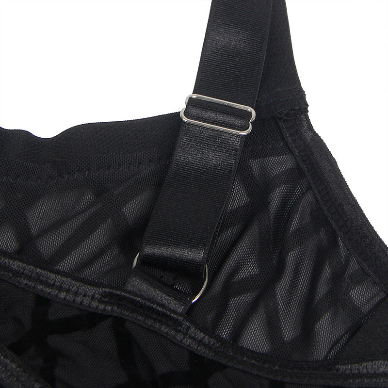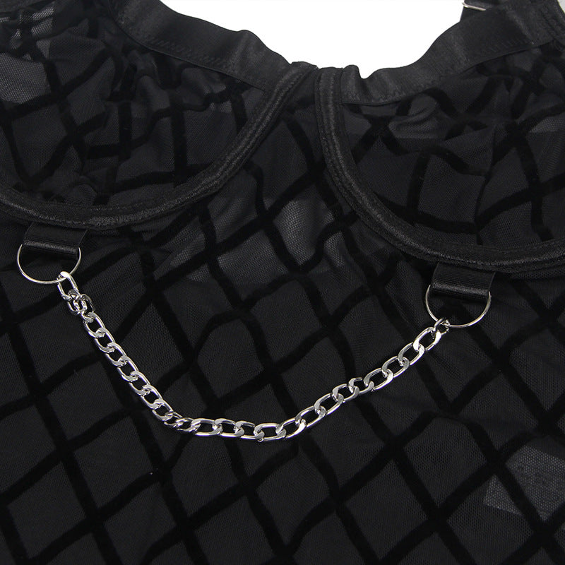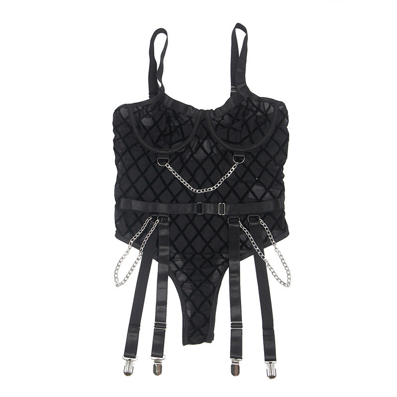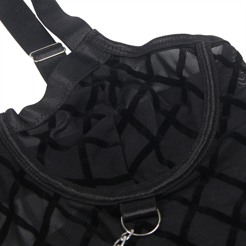 Plus Size Plaid Mesh Steel Ring Garter Suit