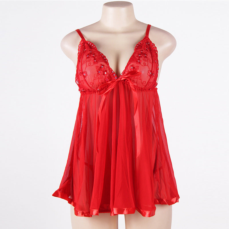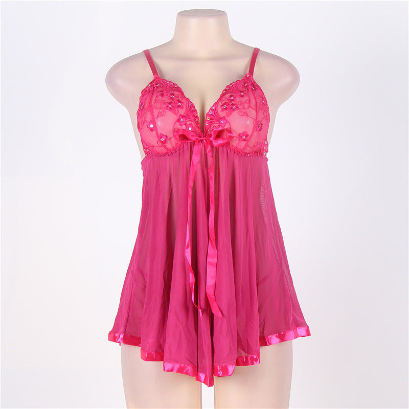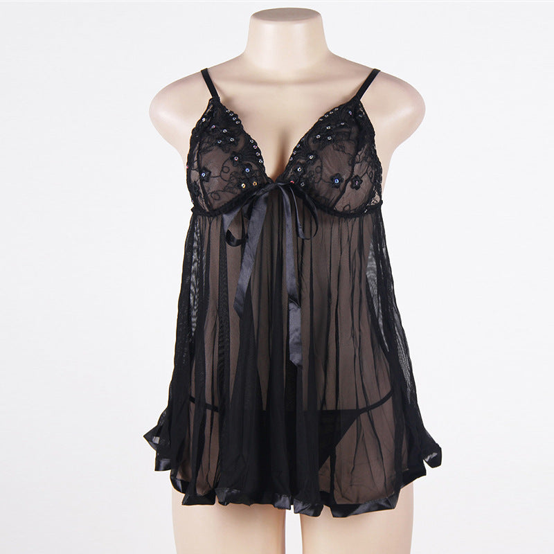 Plus Size Transparent Mesh Temptation Lace Pajamas seductive