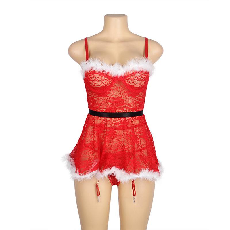 Plus Size Red Lace Garter Set Christmas Nightdress