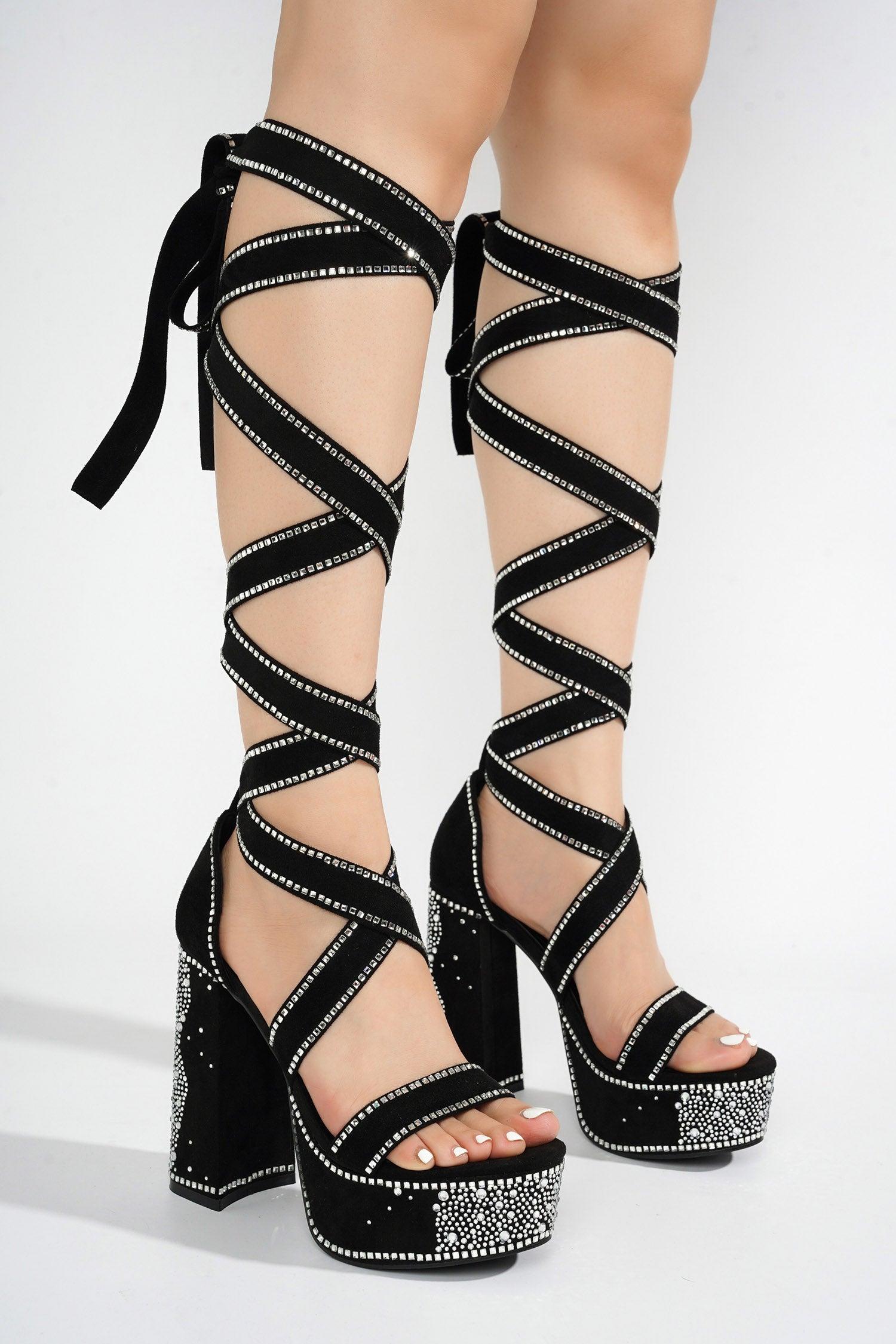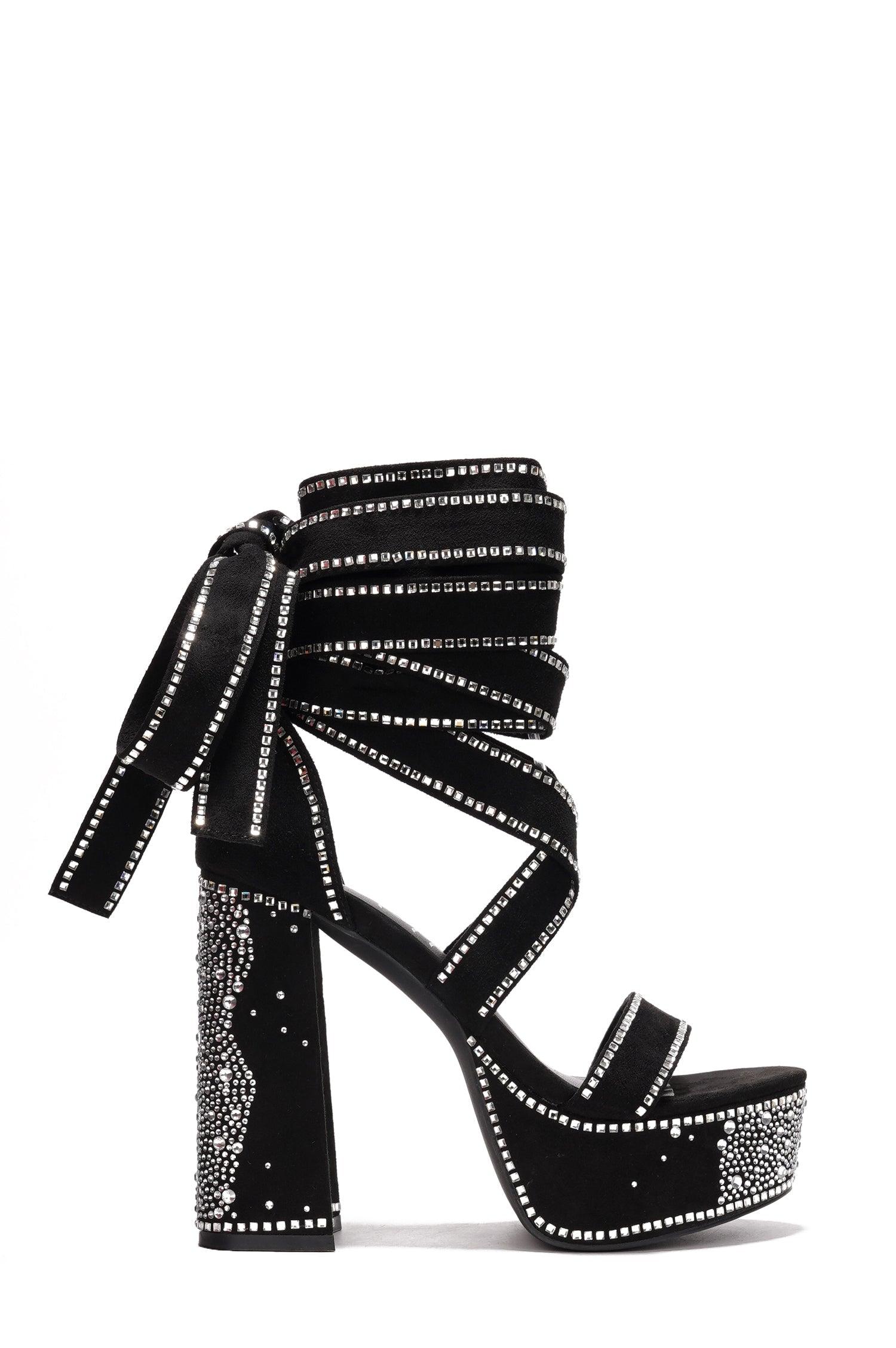 Elevate your style with these stunning heels adorned with intricate rhinestone lace that cascades down the front,ensuring you sparkle with every step. Whether you're stepping out for a night on the town or attending a special event,these heels are sure to turn heads and make a statement.