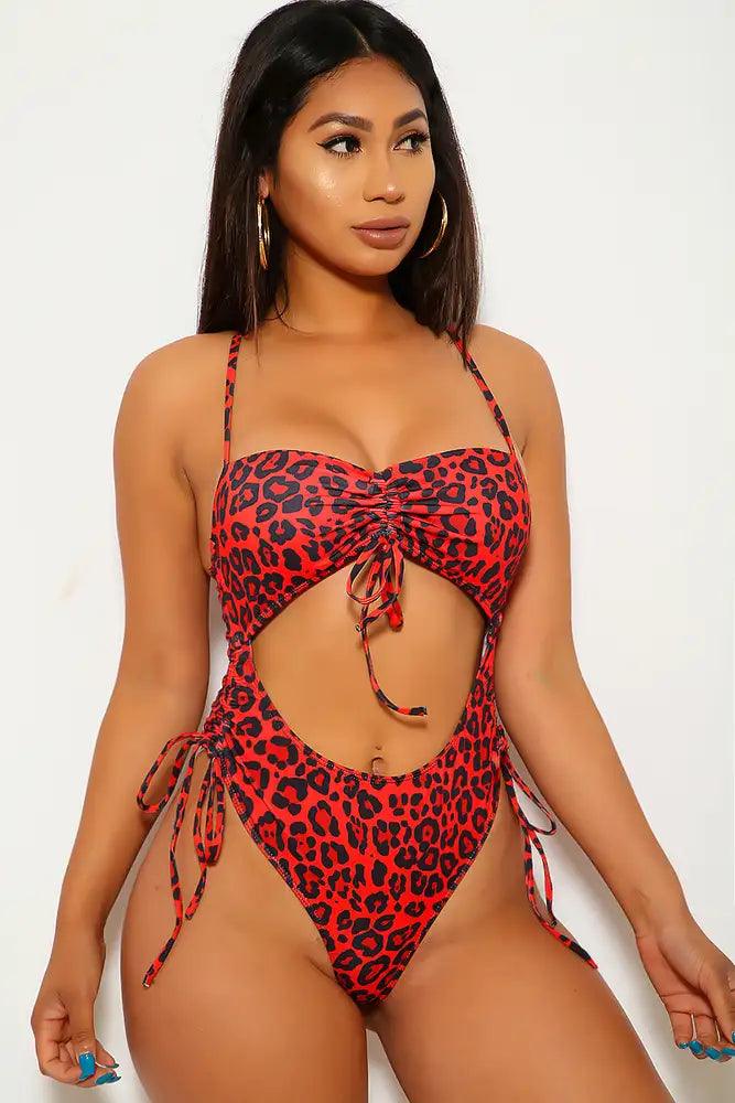 Be sexy and daring in this super cute swimsuit! Featuring; cut out, adjustable drawstrings, cheeky, adjustable straps, ruched detail, lightly padded. 82% polyester 18% spandex.