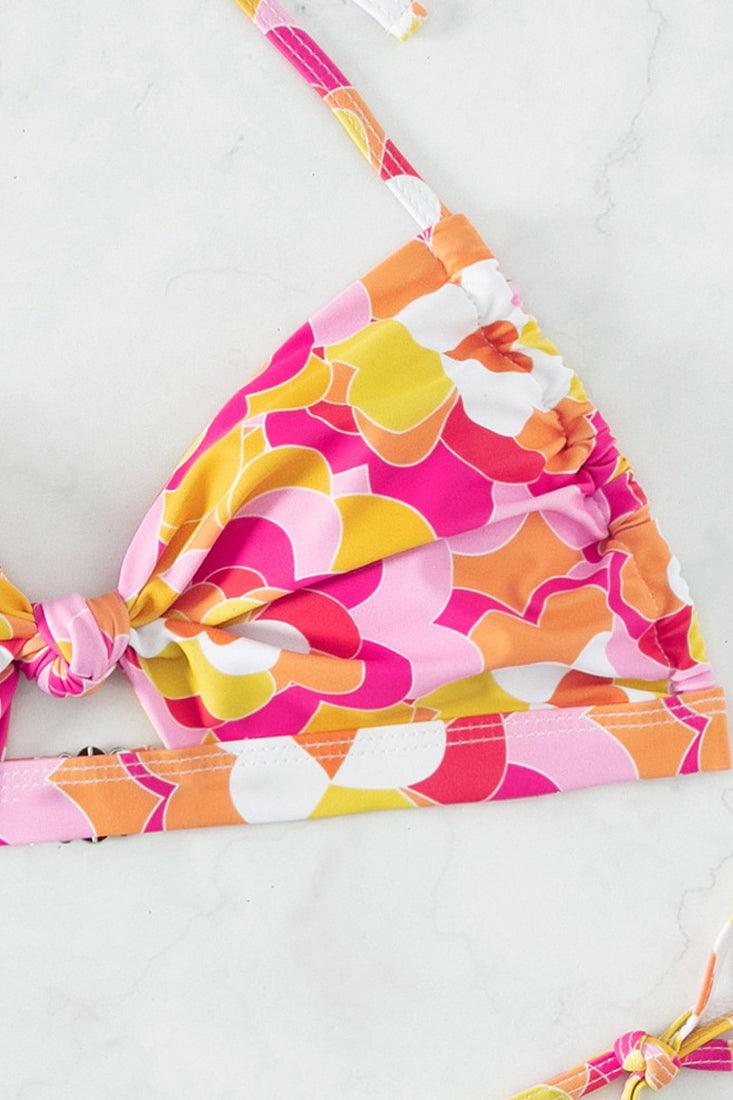Red Floral Twist Knot Cut-Out Cheeky 2Pc Sexy Swimsuit Set Bikini
